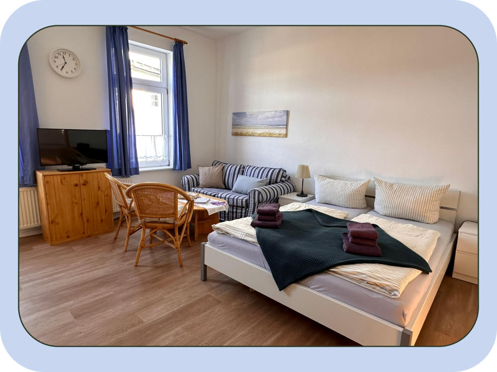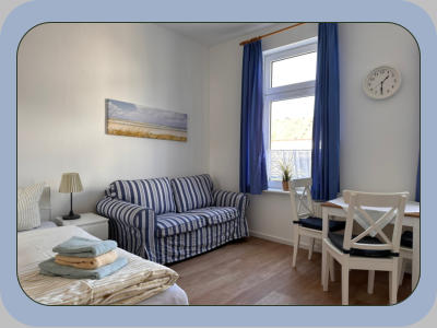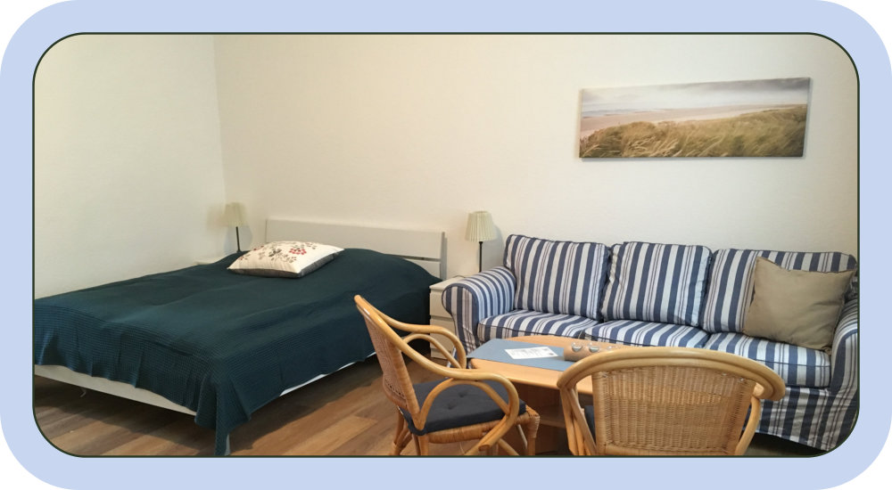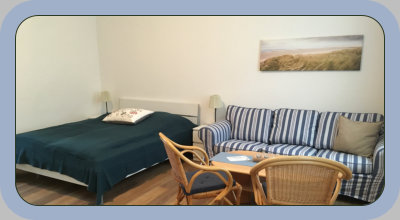 Die ca. 33qm große Wohnung für bis zu 4 Personen(max. 3 Erwachsene) befindet sich in der 1. Etage.Ihr Hund darf hier gerne mit Ihnen Urlaub machen.ab 70,00 €