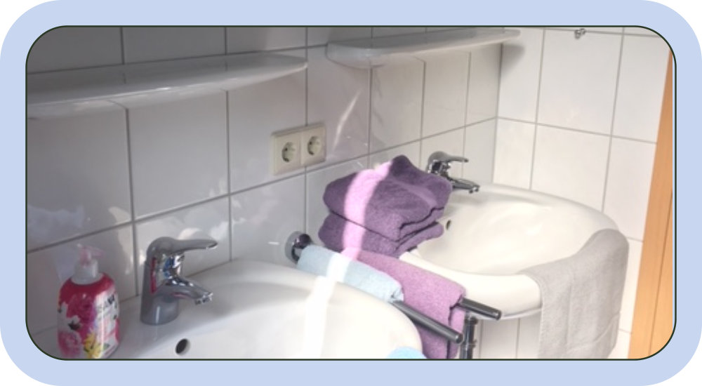 einem Badezimmer mit 2 Waschbecken und DU/WC und einer extra